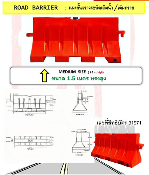 แบริเออร์พลาสติก ชนิดบรรจุน้ำ ขนาด 1.5 เมตร