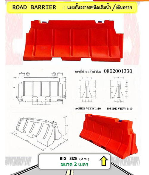 แบริเออร์พลาสติก ชนิดบรรจุน้ำ ขนาด 2 เมตร