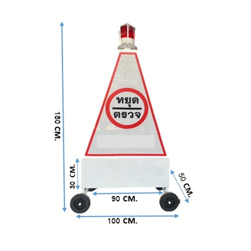 ป้ายสามเหลี่ยมหยุดตรวจ ไฟ 1 ระบบ แบบทึบ